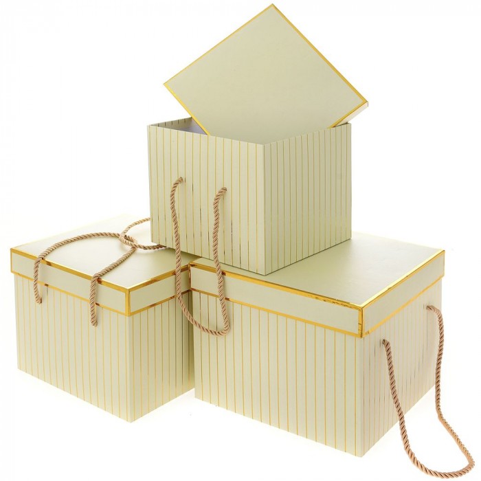 Картонена кутия беж и злато, комплект 3 бр.,18х18х16/20х20х17/22х22х18 см