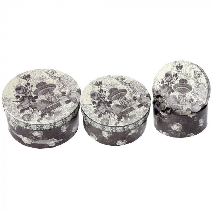 Картонена кутия Винтидж, рози, комплект 3 бр, Ф10х5/12х6/14х7 см