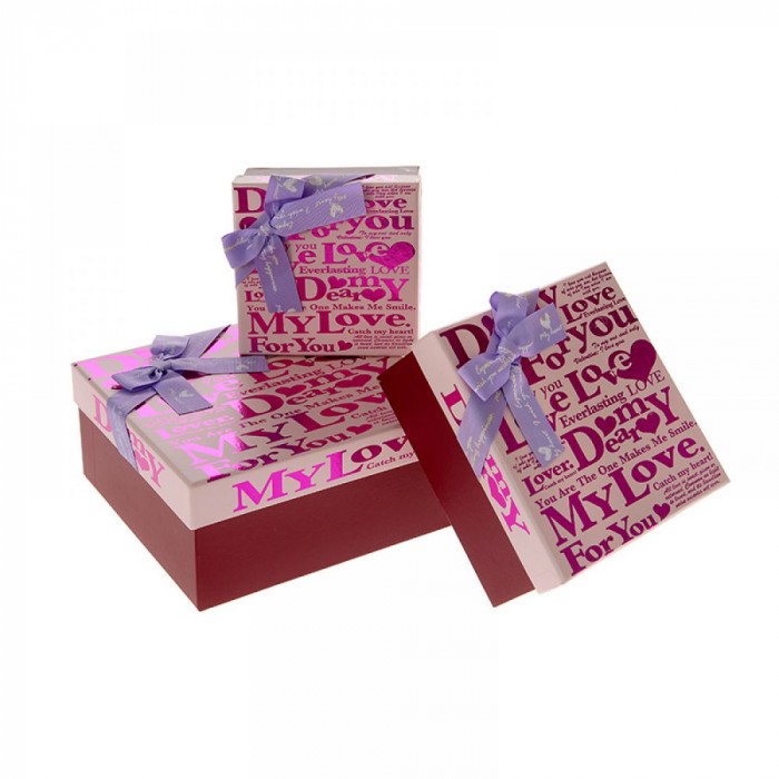 Картонена кутия LOVE, розова, к-т 3 бр.