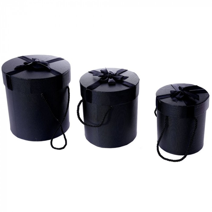 Картонена кутия с панделка, черна, комплект 3 бр.,Ф14х14/17х19/20х25 см