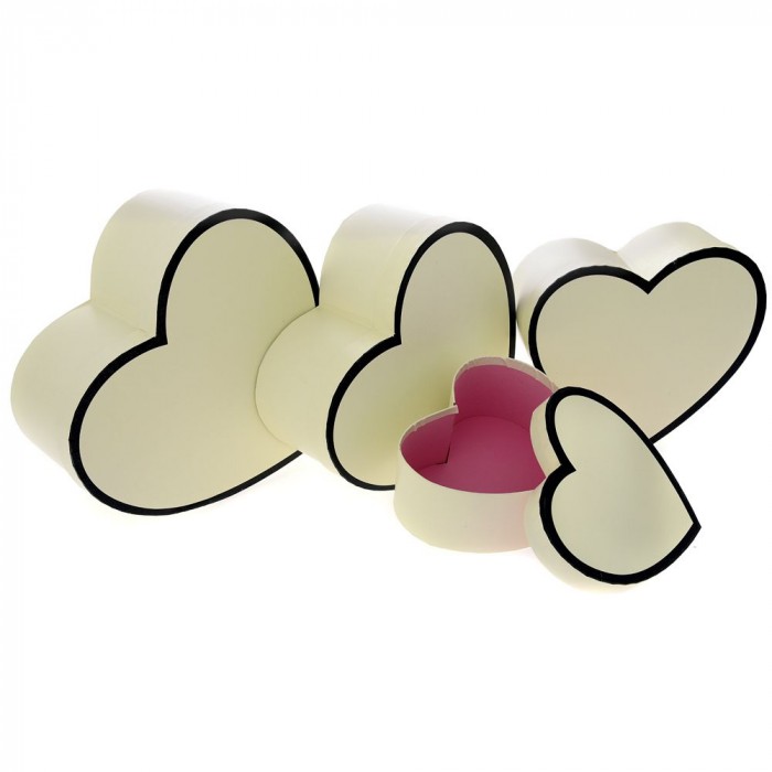 Картонена кутия сърце, екрю, комплект 4бр., 19х17х9/24х22х10/27х24х11/30х27х13 см