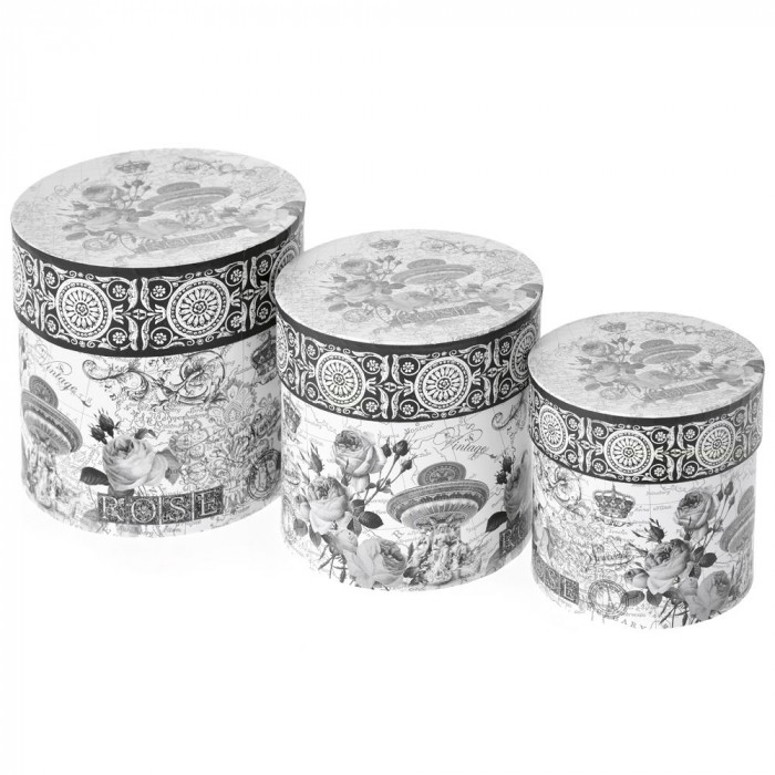 Катронени кутии комплект 3 бр, черно и бяло, ROSE, Ф15х15/18х18/21х21 см