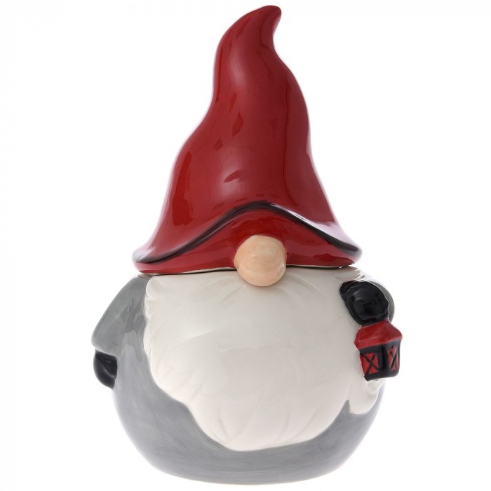 Керамичен буркан Дядо Коледа гланц, бяло и сиво, 11х11х17 см