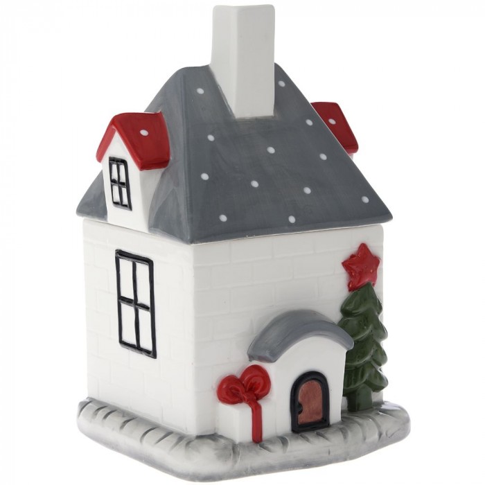 Керамичен буркан къща, гланц, бяло и сиво, 16х16х25 см