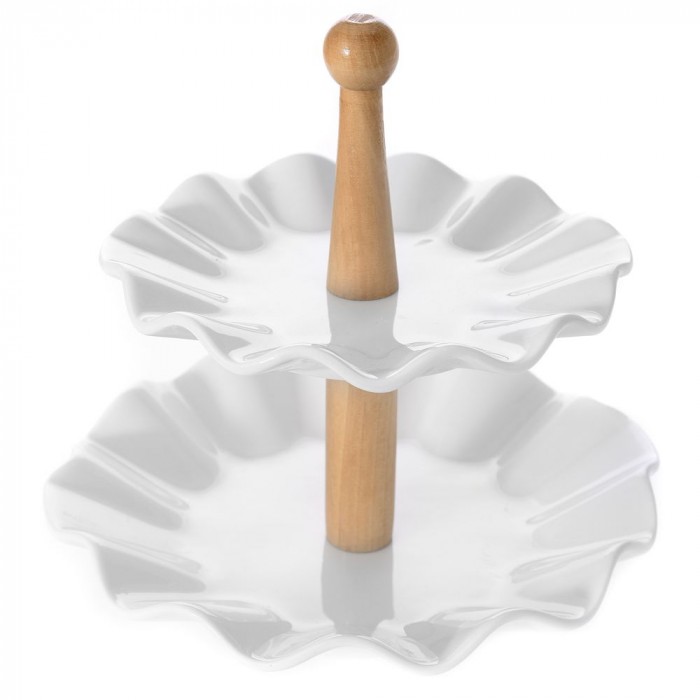 Керамичен поднос 2 -ка с бамбукова основа, Ф20/24 см