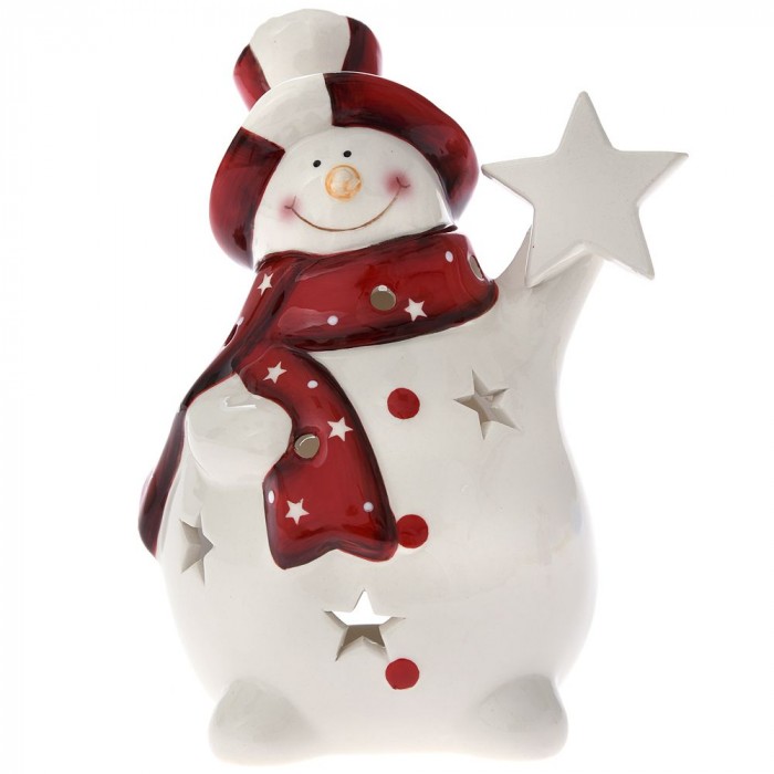 Керамичен Снежко гланц, бяло и червено, 13х11х19 см
