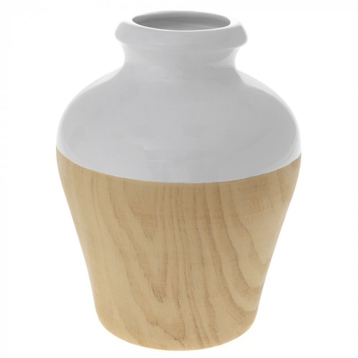 Керамична ваза ефект дърво бяла Φ20Χ25