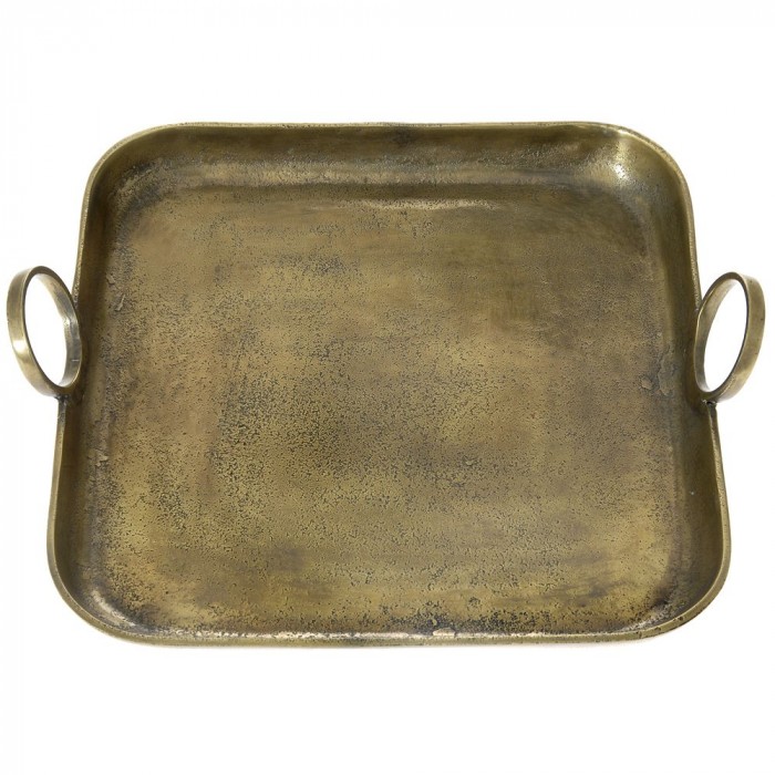 Алуминив поднос с дръжки, старо злато, 42х37 см