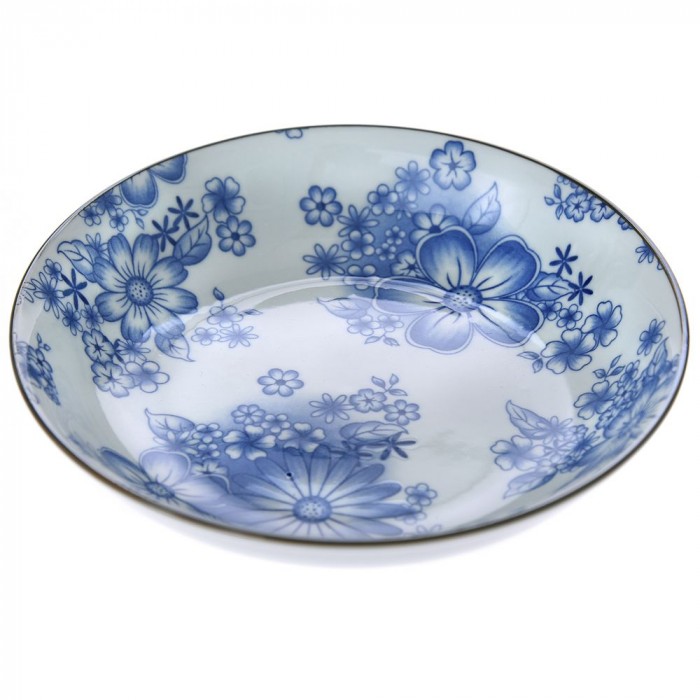 Керамична десертна чиния, сини цветя, Ф 18 см