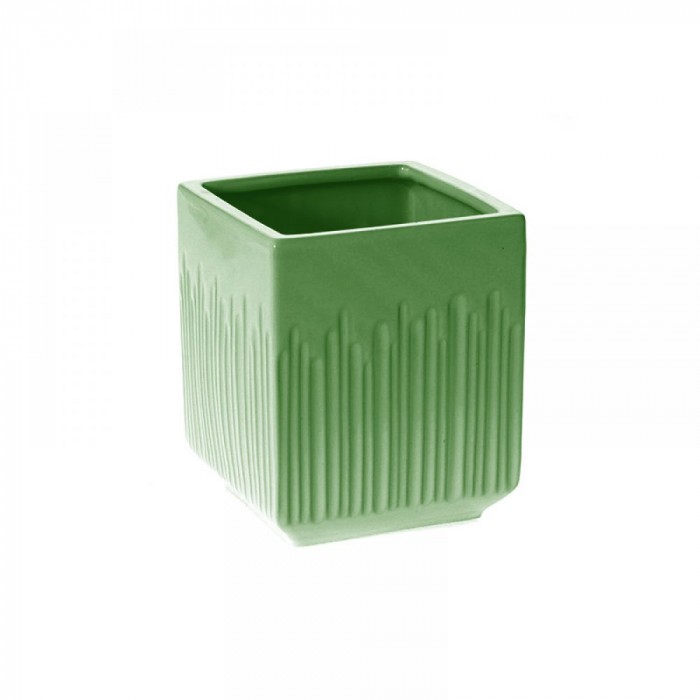 Керамична кашпа квадрат, зелена, 14.5х14.5х16.5 см