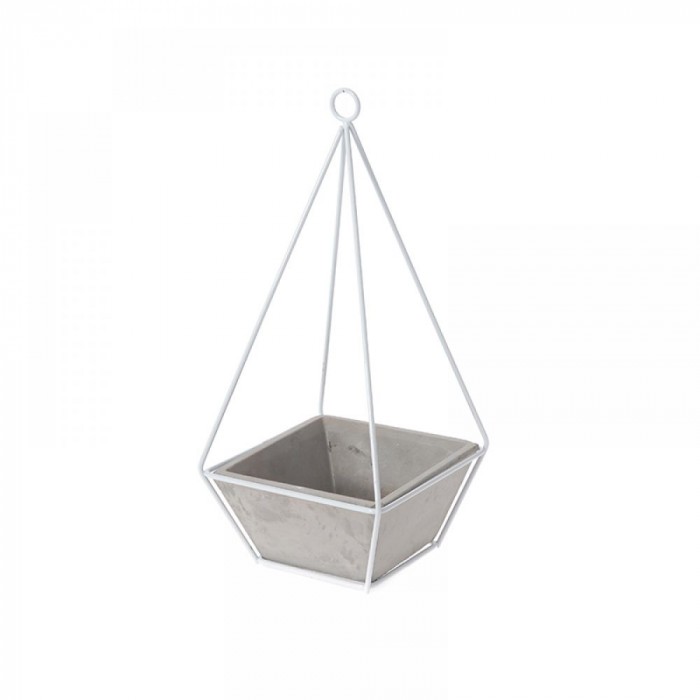 Керамична кашпа, сиво и бяло, висяща, 14х14х7 см