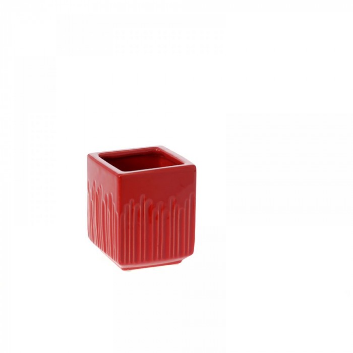 Керамична кашпа квадрат, червена, 8.5х8.5х10.5 см