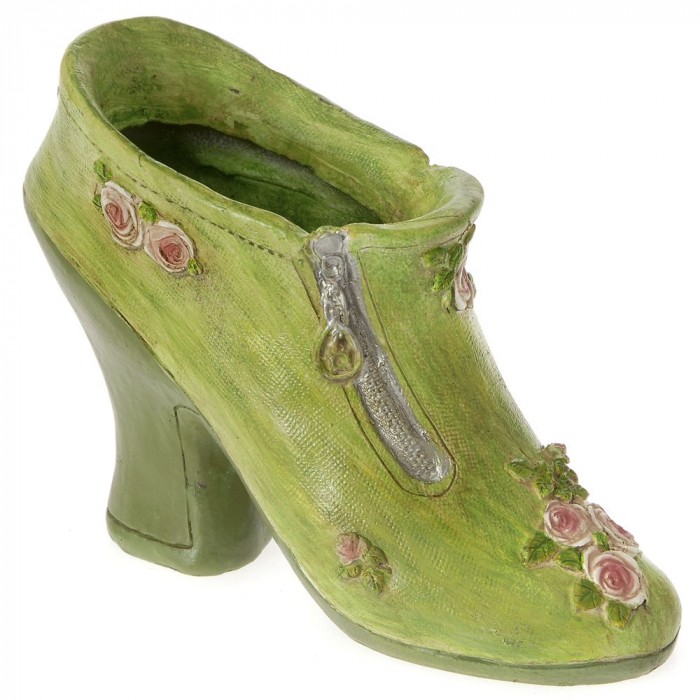 Керамична кашпа обувка, зелена, 21х10х16 см