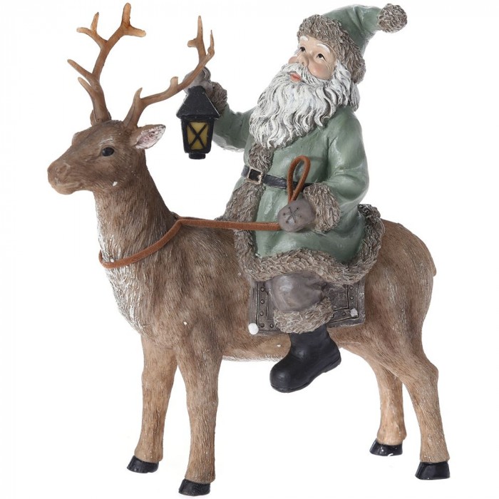 Керамична фигурка Дядо Коледа върху елен, зелен,17х19 см
