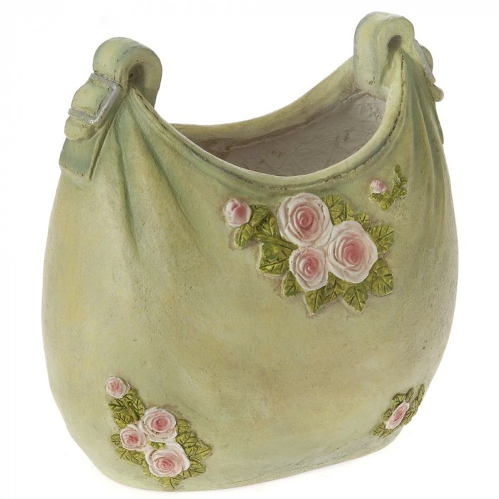 • Керамична чанта кашпа, зелена, 28х18х27 см