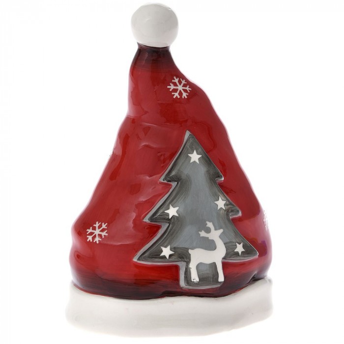 Керамична шапка гланц, бяло и червено, 11х9х16 см