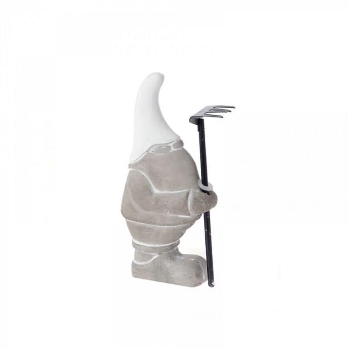 • Керамично джудже, сиво и бяло с гребло, 8.5х3х17 см