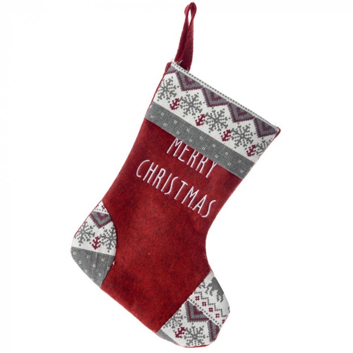 Коледен ботуш от плат, червено и сиво, 15х20 см