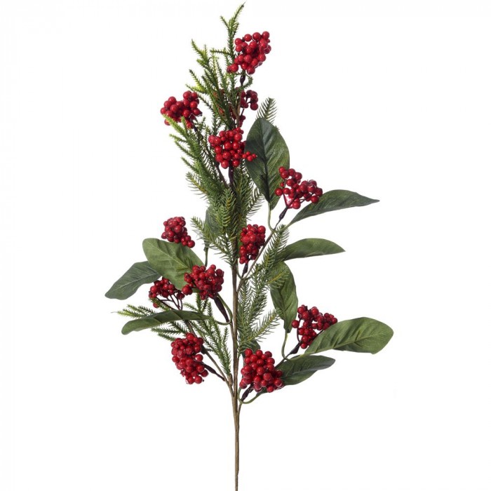 Коледен аранжиран стък с малки червени топчета, 80 см