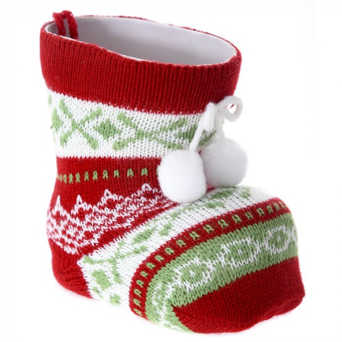Коледен буркан, ботуш, червено-зелен, 14 см