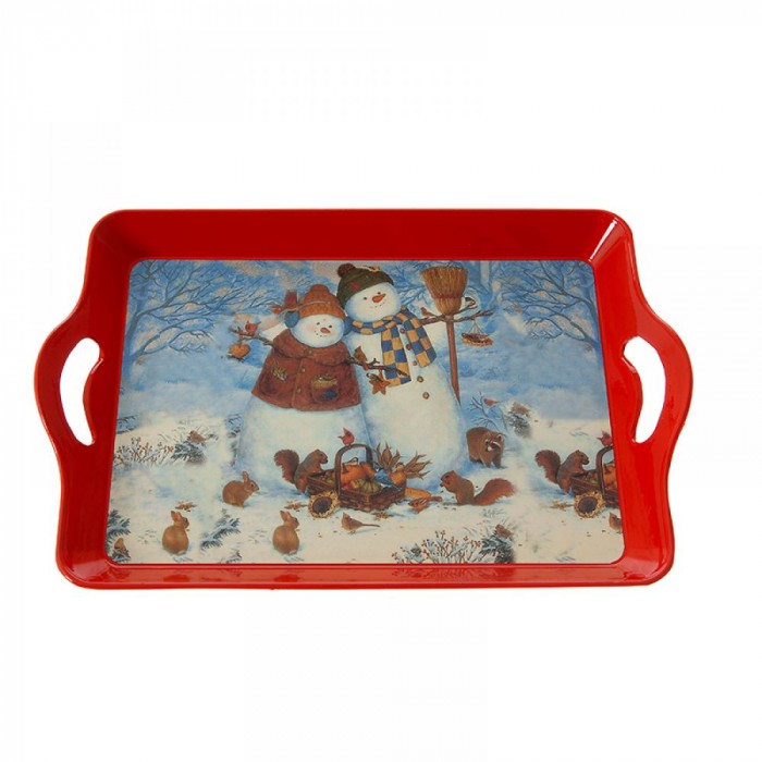 Коледен поднос пластик правоъгълен Снежковци 46Х31CM