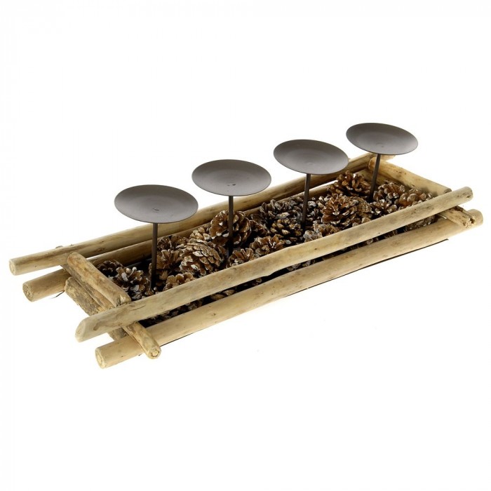 Коледен свещник дърво със шишарки, 50Х20Х12СМ