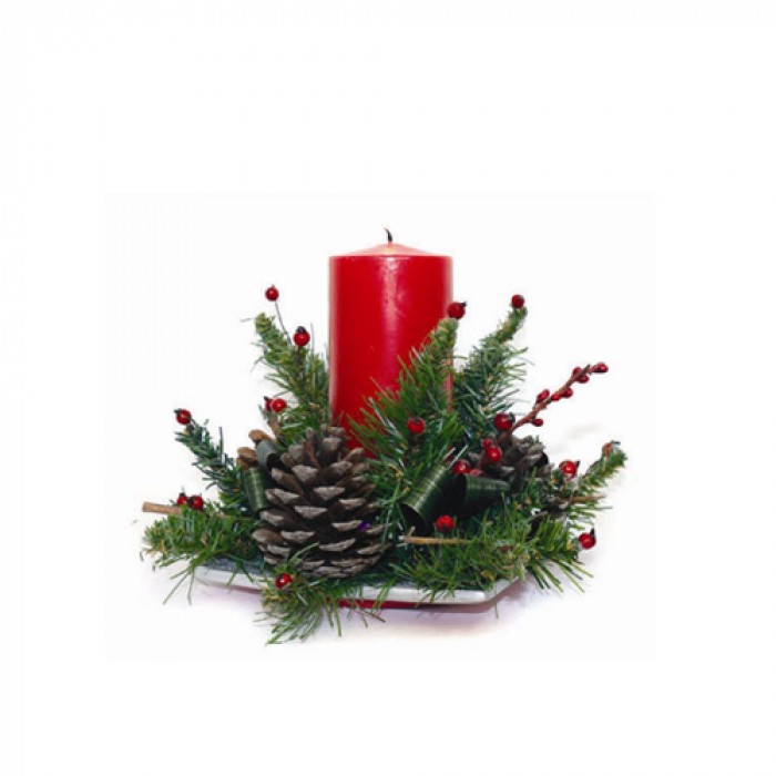 Коледна аранжировка със 1 червена свещ цилиндър 22Х21CM