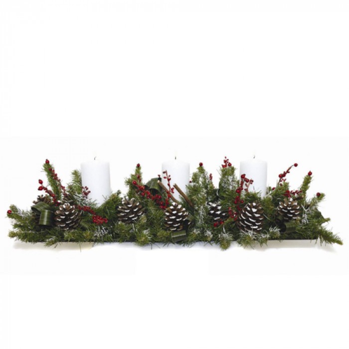 Коледна аранжировка елхови клонки и 3 свещи 80Х20Х20CM
