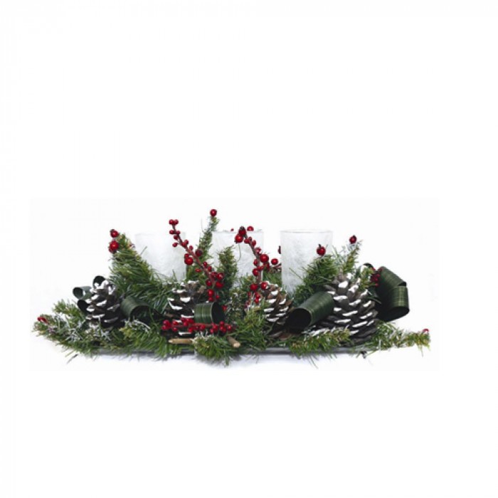 Коледна аранжировка елхови клонки и 3 свещи