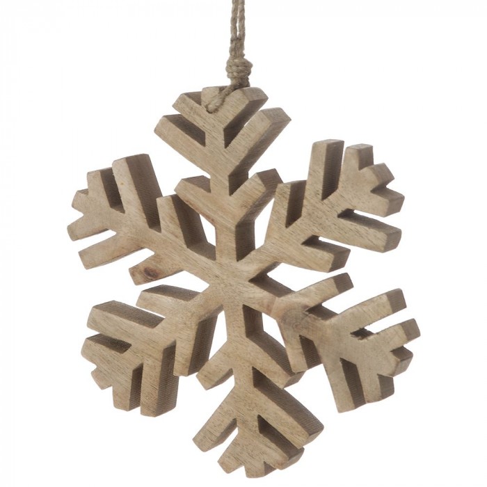 Коледна дървена висулка, снежинка, натюр, 20х20 см