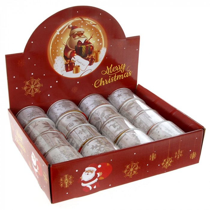 Коледна панделка сребро и злато 1, 6.3CM.X10YARDS