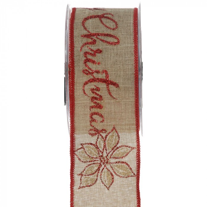 Коледна панделка Merry Christmas 5CMX9,10 бежаво и червено