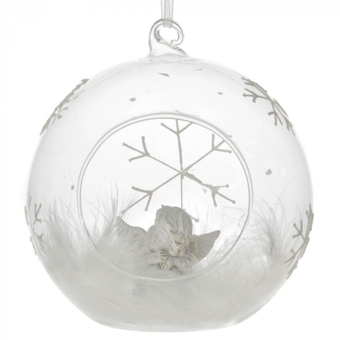 • Коледна стъклена топка с ангел бяла, 12СМ