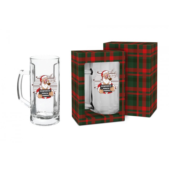Коледна чаша за бира 500мл, Дядо Коледа“Наздраве за Новата Година!“