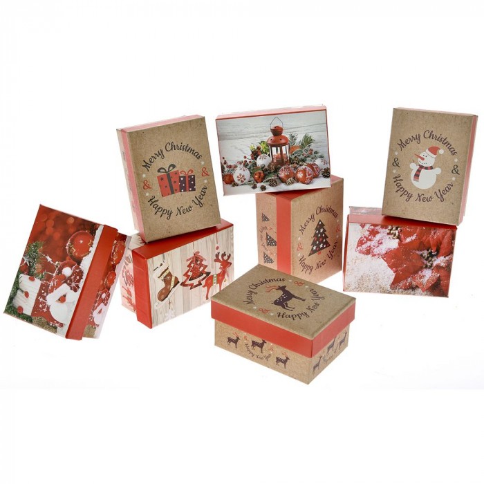 Коледни картонени кутийки, 4 модела, 11х8х6 см