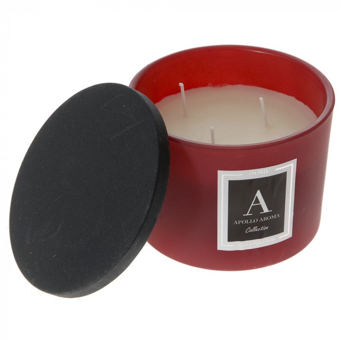 Ароматизирана свещ в стъклен съд червен, 3 фитила, D9.5X8CM