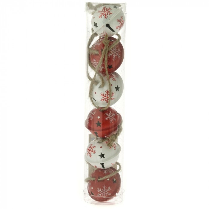 Комплект 6 бр, звънчета, червени и бяло, ф 5 см