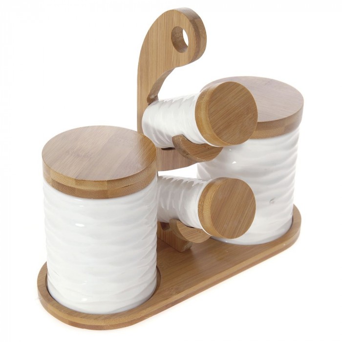 Комплект за подправки керамика/бамбук, 26х13х10 см
