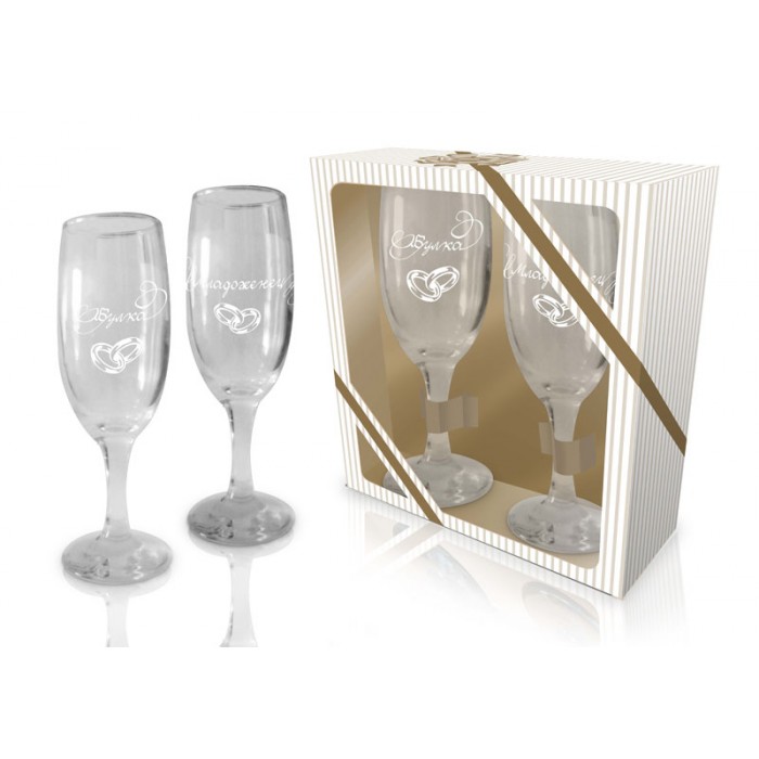 Комплект чаши стъкло със столче “БУЛКА / МЛАДОЖЕНЕЦ“
