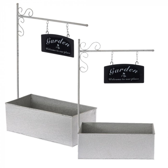 Комплект сиви метални кашпи, 44х21х65/37х19х57 см