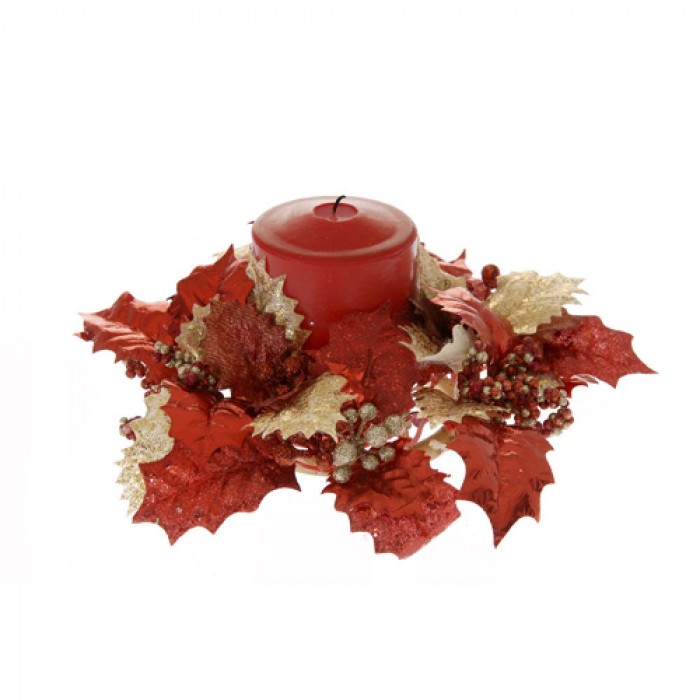 Кранц за свещ червени листа 25CM