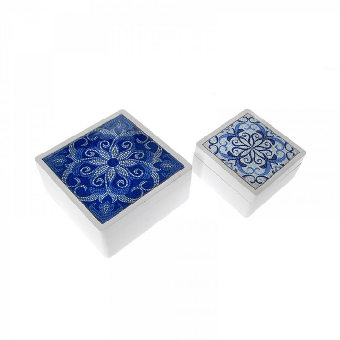 Кутии MDF, сини цветя, к-т 2 бр., 17х18х8/12.5х12.5х6