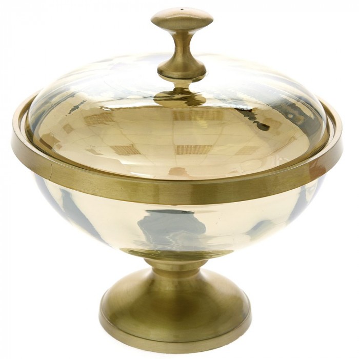 • Купа с капак, метал и стъкло, злато, Ф20х20 см