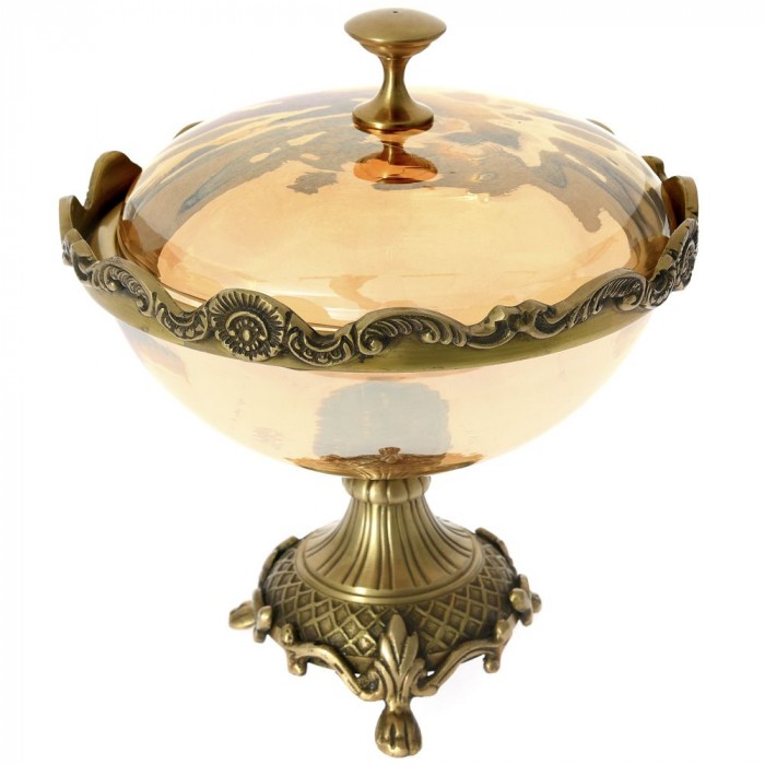 Купа с капак, метал и стъкло, злато, Ф20х42 см