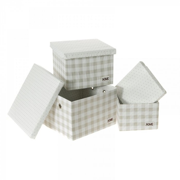 Кутии, бели, кариран плат, HOME, к-т 3 бр.