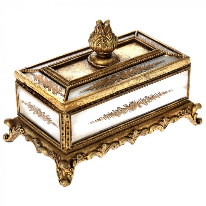 Кутия за бижута, полирезин, злато, 19х11х13 см