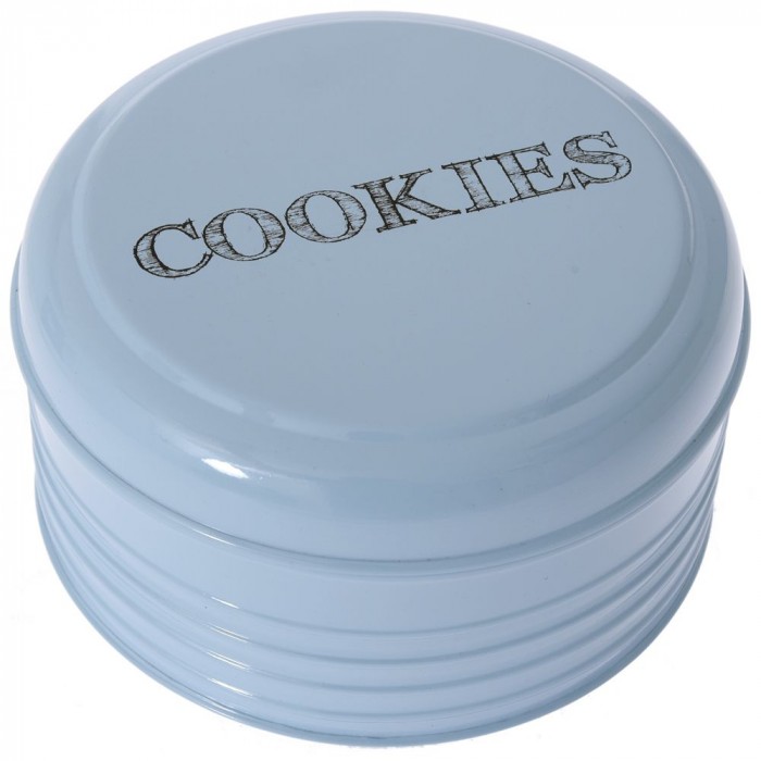 Кутия за бисквити с капак, метал, син, Ф21х11 см