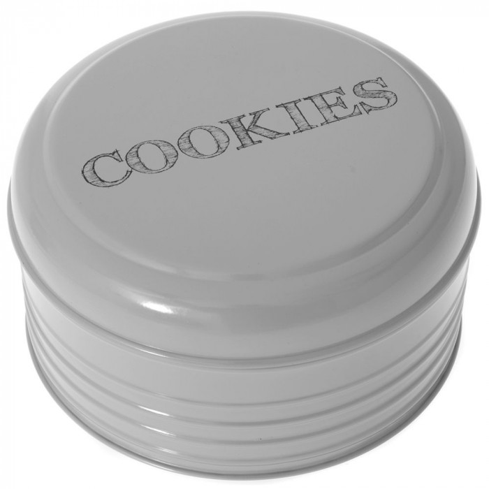 Кутия за бисквити с капак, метал, сив, Ф21х11 см