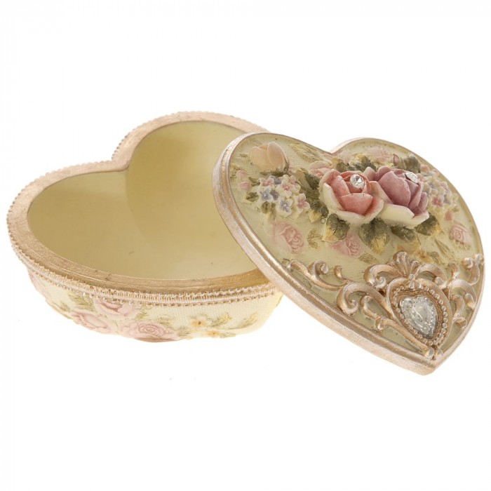 Кутия за бижута, полирезин, розови рози, 8х8х5 см