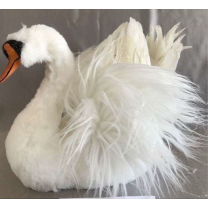 Лебед покрит с бели пера и кадифе, 30х20х21 см